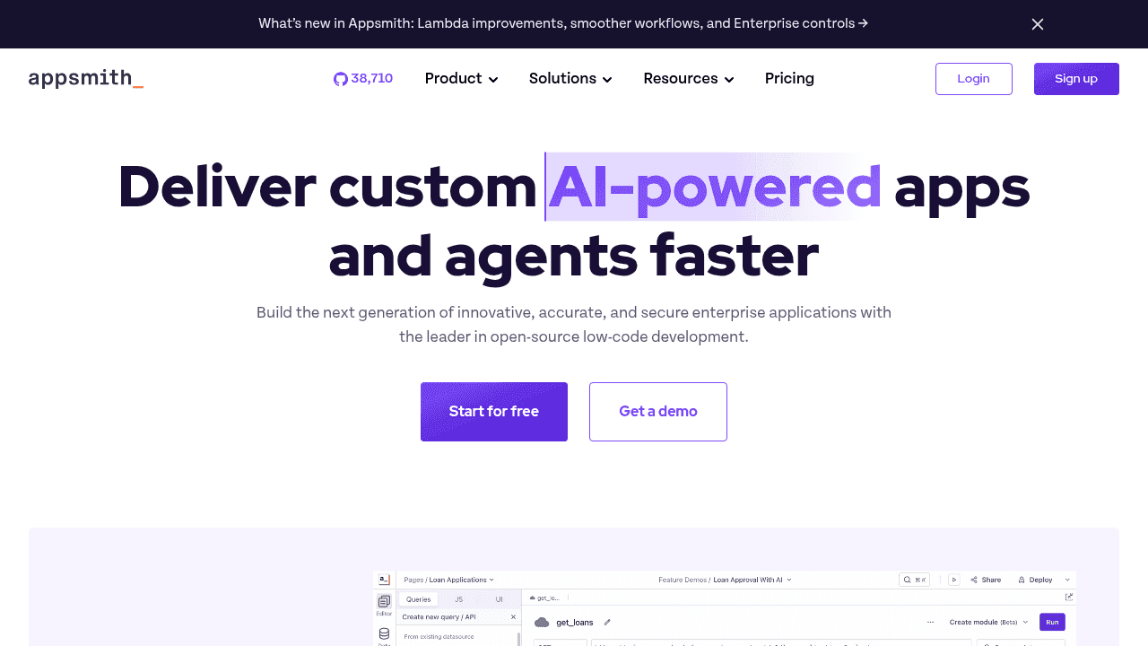 Appsmith is an open-source low-code platform focused on building internal tools and admin panels. It's designed primarily for developers who want to accelerate frontend development while maintaining control over backend logic.