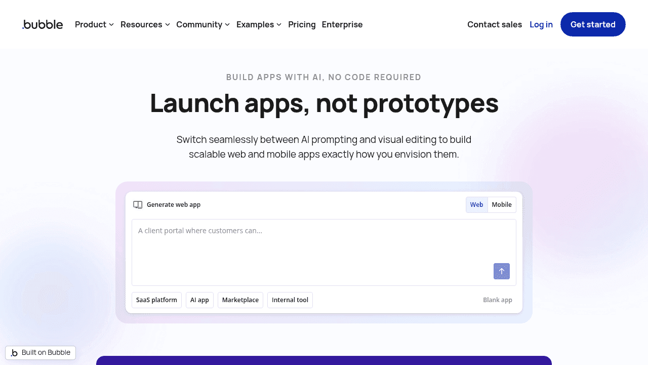 Bubble is a visual programming tool that enables users to design full-stack web applications. It provides a canvas where you can build pixel-perfect layouts while managing backend workflows and database logic in the same environment. Rather than just assembling blocks, it offers a high degree of design freedom.