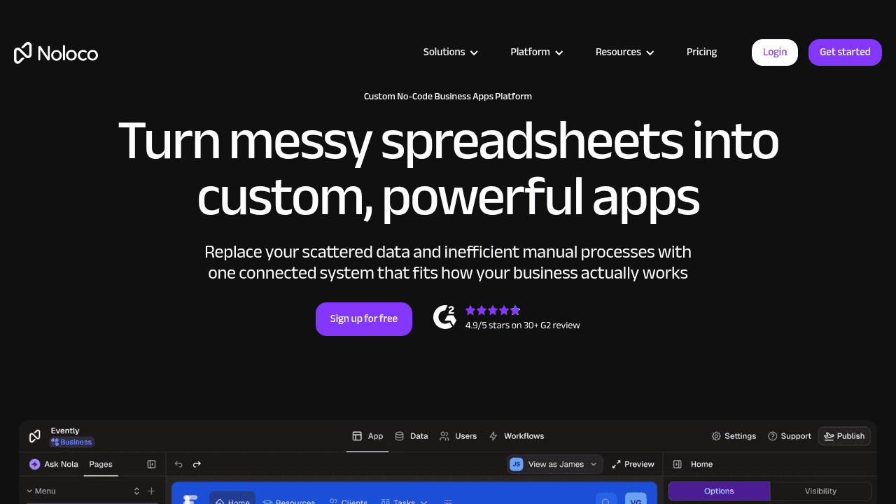 Noloco is a no-code platform that builds business applications and portals on top of data sources like Airtable, Google Sheets, and PostgreSQL. The platform focuses on helping teams create internal tools and customer portals without coding, with an emphasis on connecting to existing data rather than providing its own database layer.
